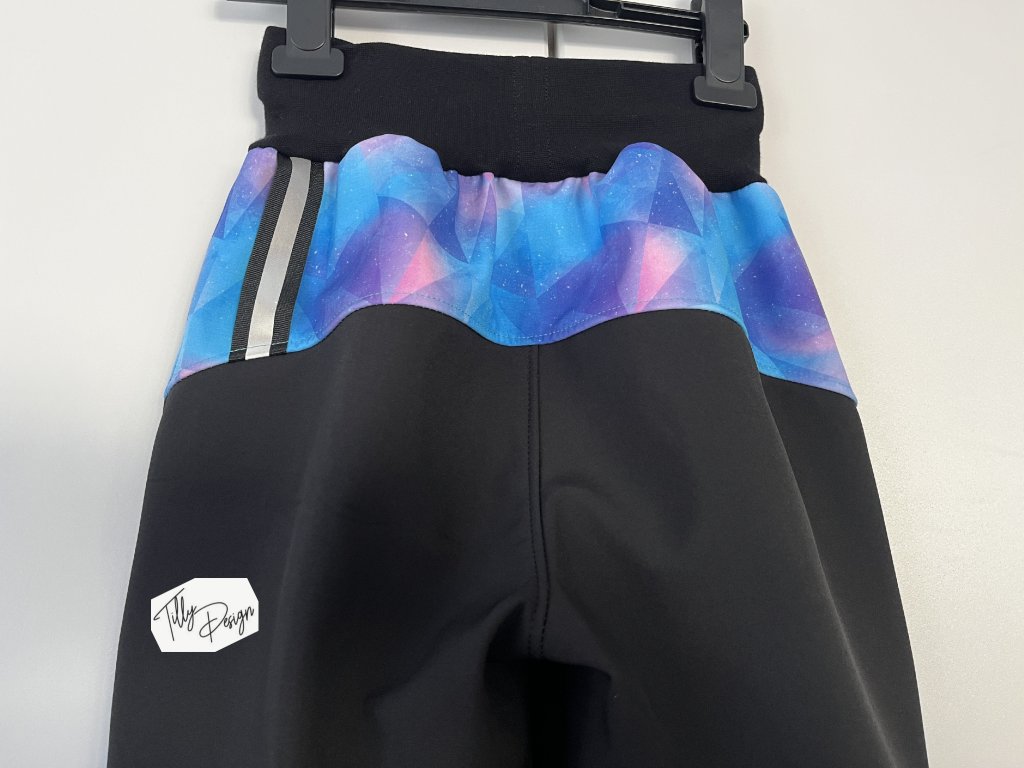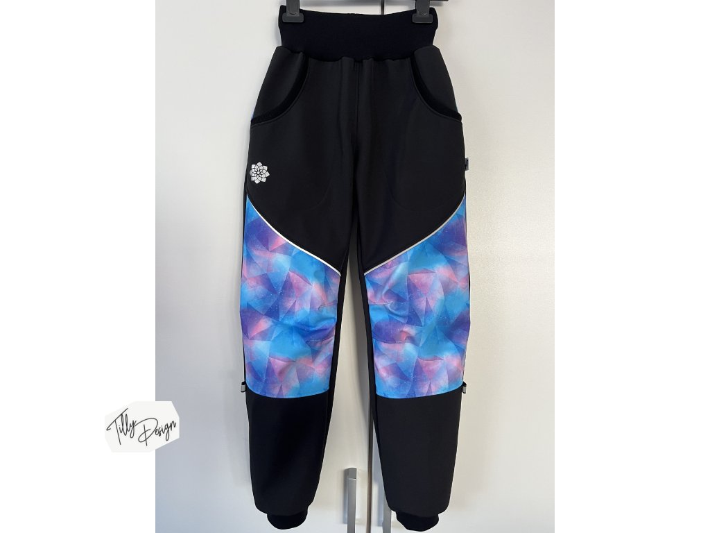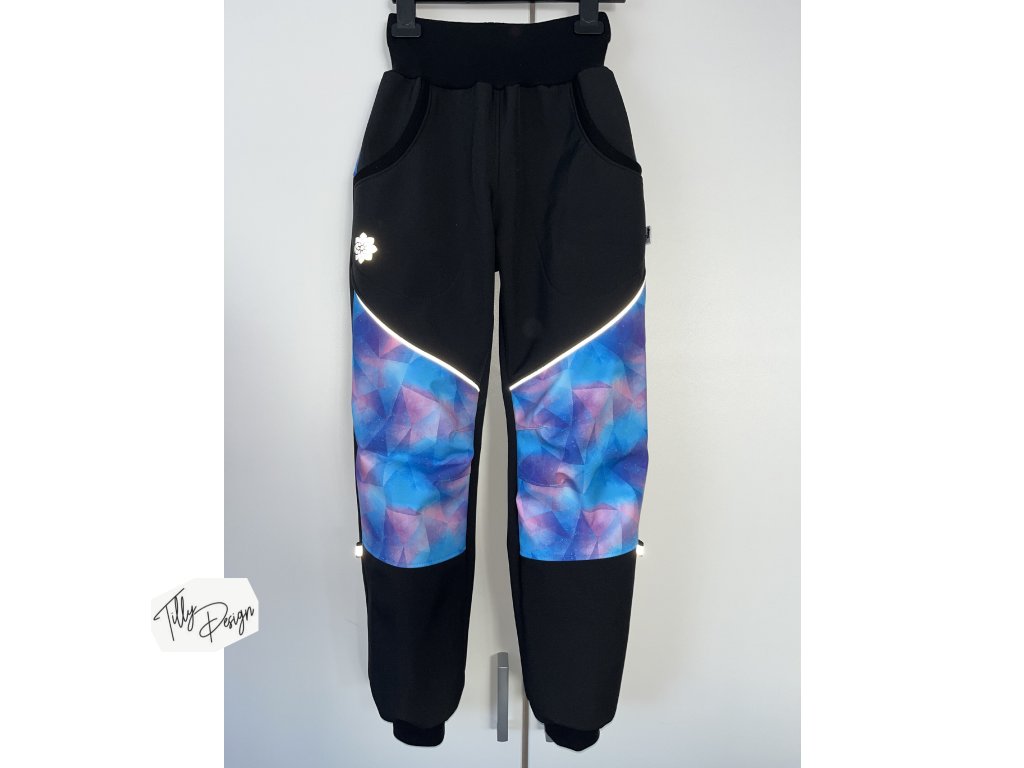 Dětské zateplené softshellové kalhoty s reflexními prvky - černá a magické trojúhelníky